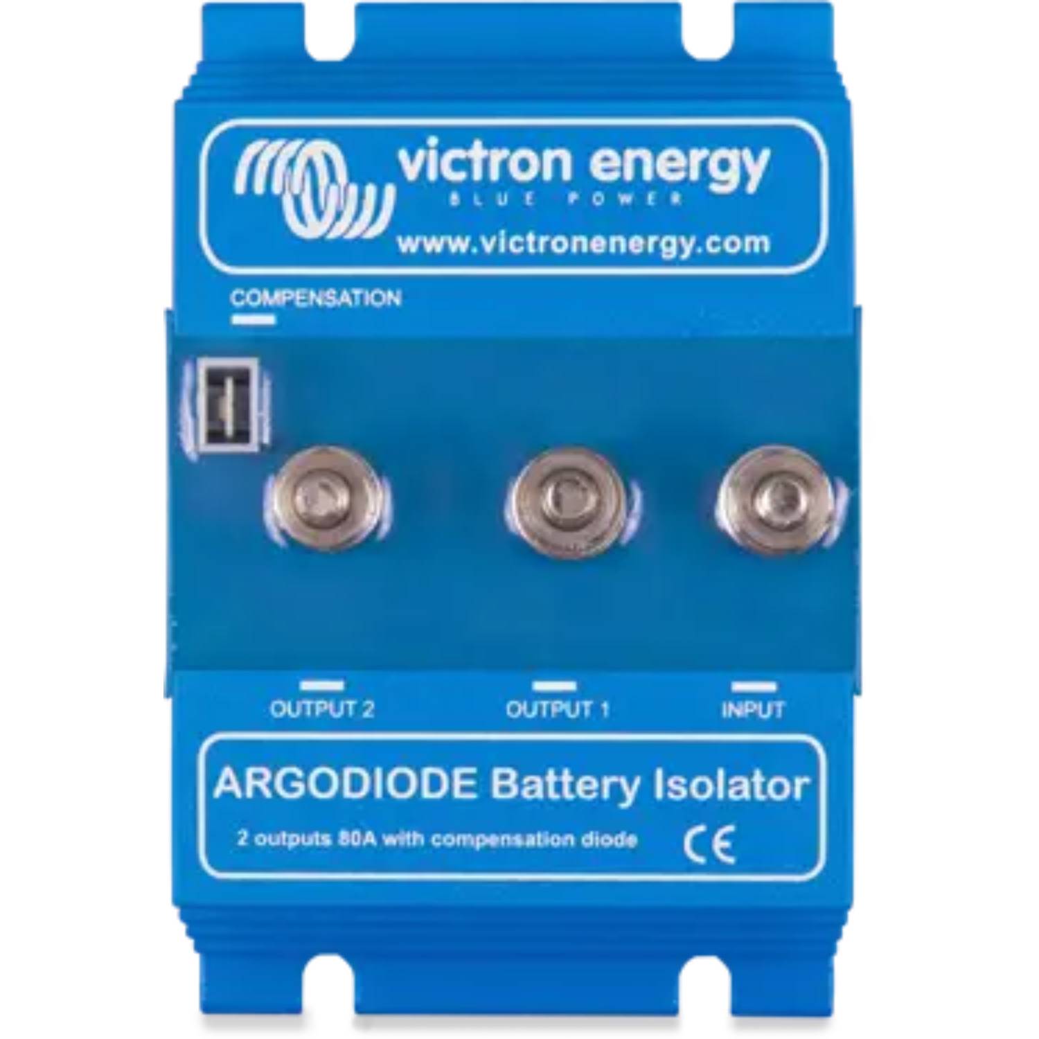 Gli isolatori di batterie Argo presentano un calo di tensione ridotto grazie all’uso di diodi Schottky: a bassa corrente il calo di tensione è di ca. 0,3 V e al carico nominale ca. 0,45V. Tutti i modelli sono equipaggiati con un diodo di compensazione che permette di aumentare leggermente la tensione di uscita dell’alternatore per compensare il calo di tensione sui diodi dell’isolatore.