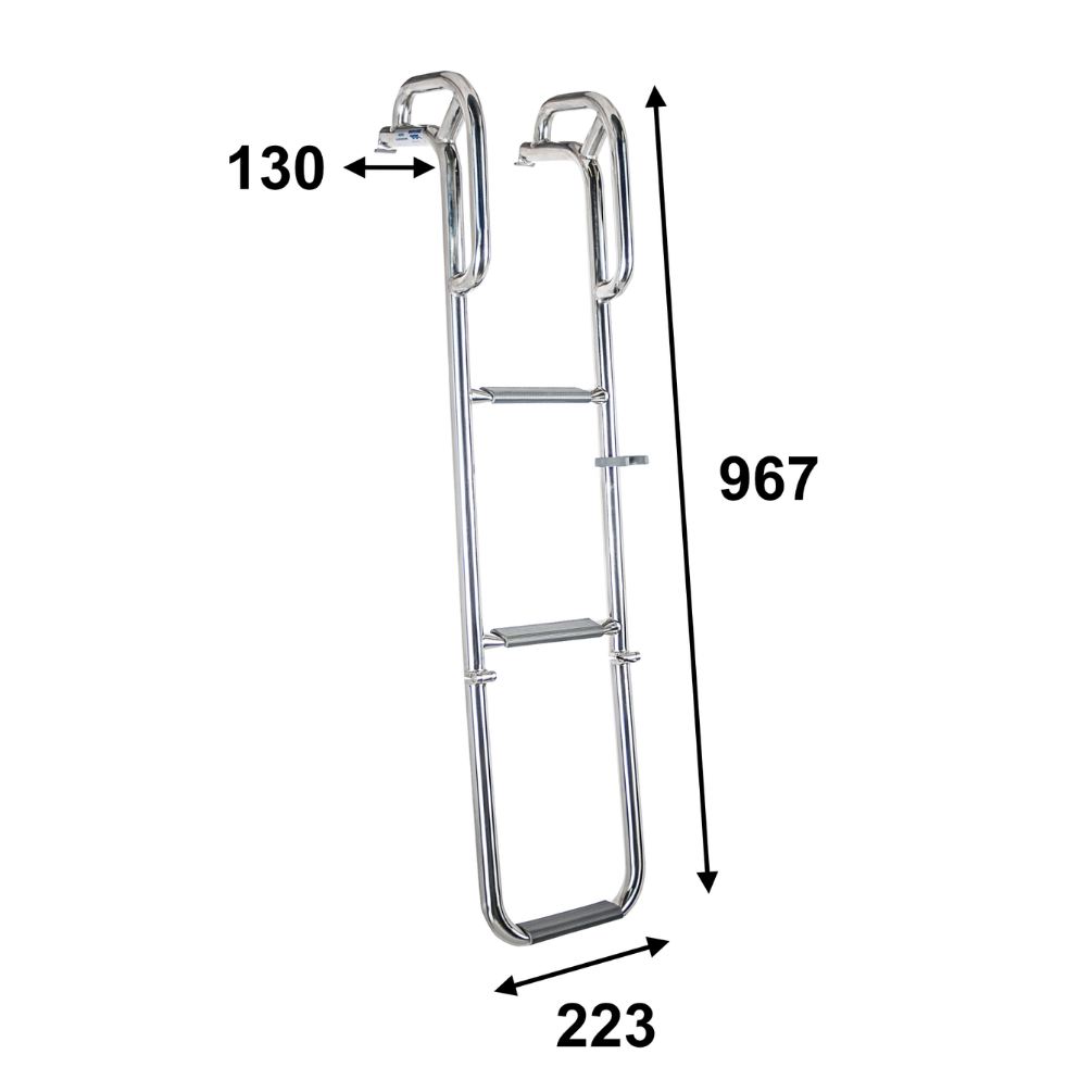 Questa popolare scaletta a gancio è progettata per essere facilmente montata sulla prua di una barca a motore, su un bompresso esistente o come complemento ideale per uno qualsiasi dei nostri bompressi. Offre un comodo aggancio e sgancio, permettendoti di utilizzarla solo quando necessario. La scaletta è dotata di tre gradini, di cui il più basso è stato sapientemente progettato per essere pieghevole. I gradini piatti in plastica garantiscono una presa sicura, mentre le robuste maniglie offrono un supporto stabile per salire e scendere in sicurezza. Ogni scala è dotata di cinghia di sicurezza, due ganci di fissaggio e tutte le viti necessarie per l'installazione. Realizzata in acciaio inossidabile AISI 316 resistente agli acidi, è lucidata a mano per ottenere una finitura di qualità superiore.