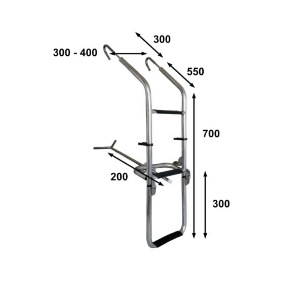 Scala di prua con maniglie posteriori angolate e supporto regolabile - 3 gradini