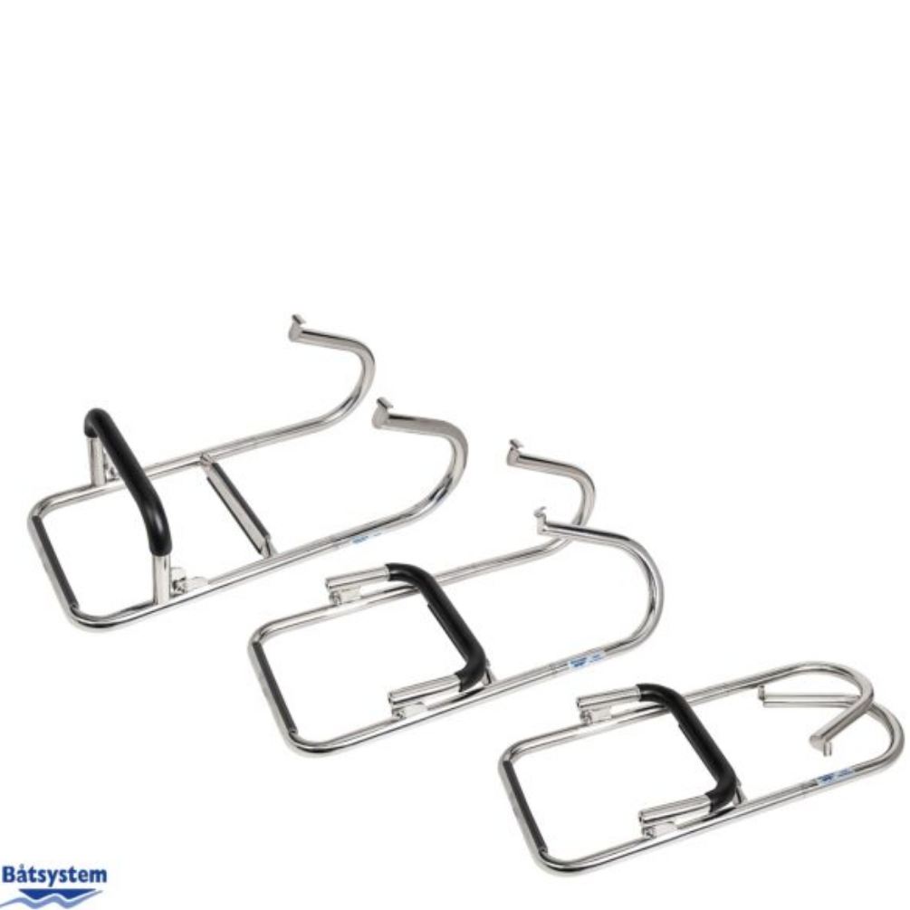 Scaletta laterale facile da usare, che consente di salire a bordo agevolmente dal lato dell'imbarcazione. La scala si monta facilmente sul ponte e può essere ripiegata per un rimessaggio ordinato. I gradini ergonomici e piatti e il manubrio alto facilitano la salita. Il manubrio si ripiega facilmente quando si ripone la scala. Realizzato in acciaio inossidabile AiSi316 e lucidato a mano per una finitura impeccabile. Staffe incluse. Un paio di raccordi inclusi.