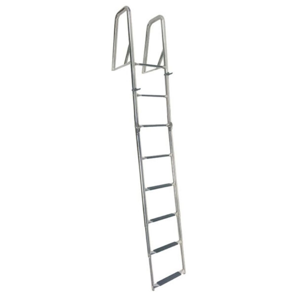Maniglie più alte per una presa ancora più comoda e facile da impugnare. Adatto sia per il bagno che per una scaletta di salvataggio. Dispone di otto gradini di cui gli ultimi cinque sono telescopici per una pratica regolazione della lunghezza durante la stagione balneare o in inverno, per proteggere la scaletta dal ghiaccio o dall'usura . Appoggio piatto per una presa comoda e sicura. Realizzato in acciaio inossidabile AiSi 316 resistente agli acidi e lucidato a mano per la migliore finitura!