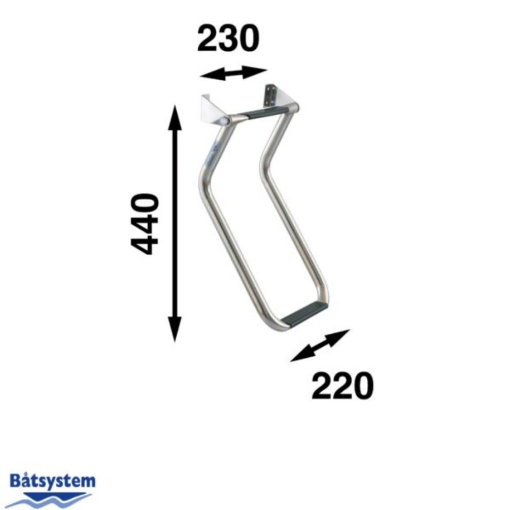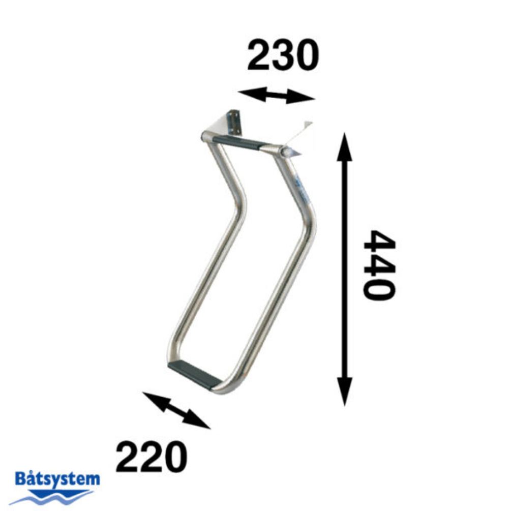 Scaletta pieghevole per poppa con due gradini piatti. Fissaggio tramite due attacchi angolari. Facile da ripiegare e facilmente raggiungibile dall'acqua. La parte angolata della scala è sostenuta dallo scafo, il che facilita la salita e offre ampio spazio per appoggiare i piedi. Realizzato in acciaio inossidabile AiSi 316 resistente agli acidi e lucidato a mano per la migliore finitura.