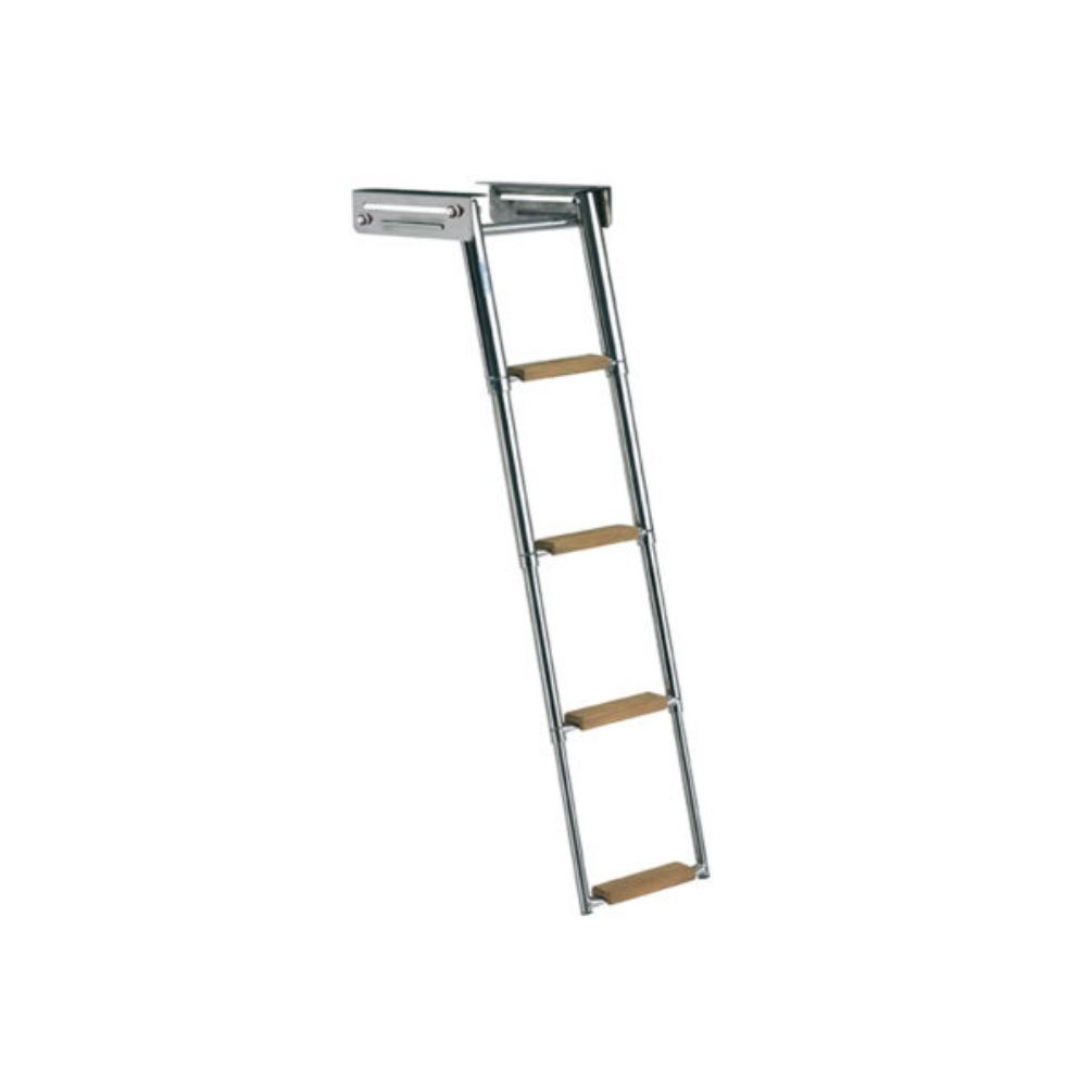 Una scaletta telescopica con cassone da installare sotto la piattaforma da bagno. Una scelta ovvia per uno sbarco piรน facile, una soluzione di sicurezza facile da usare e un'esperienza di bagno piรน piacevole ! Dotata di quattro gradini in teak, belli da vedere e con una superficie di appoggio comoda . La scala รจ dotata di caratteristiche quali il bloccaggio dei gradini, un pratico bloccaggio posteriore e un sistema scorrevole per una regolazione senza attrito nella struttura . Realizzato in acciaio inossidabile AiSi 316 resistente agli acidi e lucidato a mano per la migliore finitura.