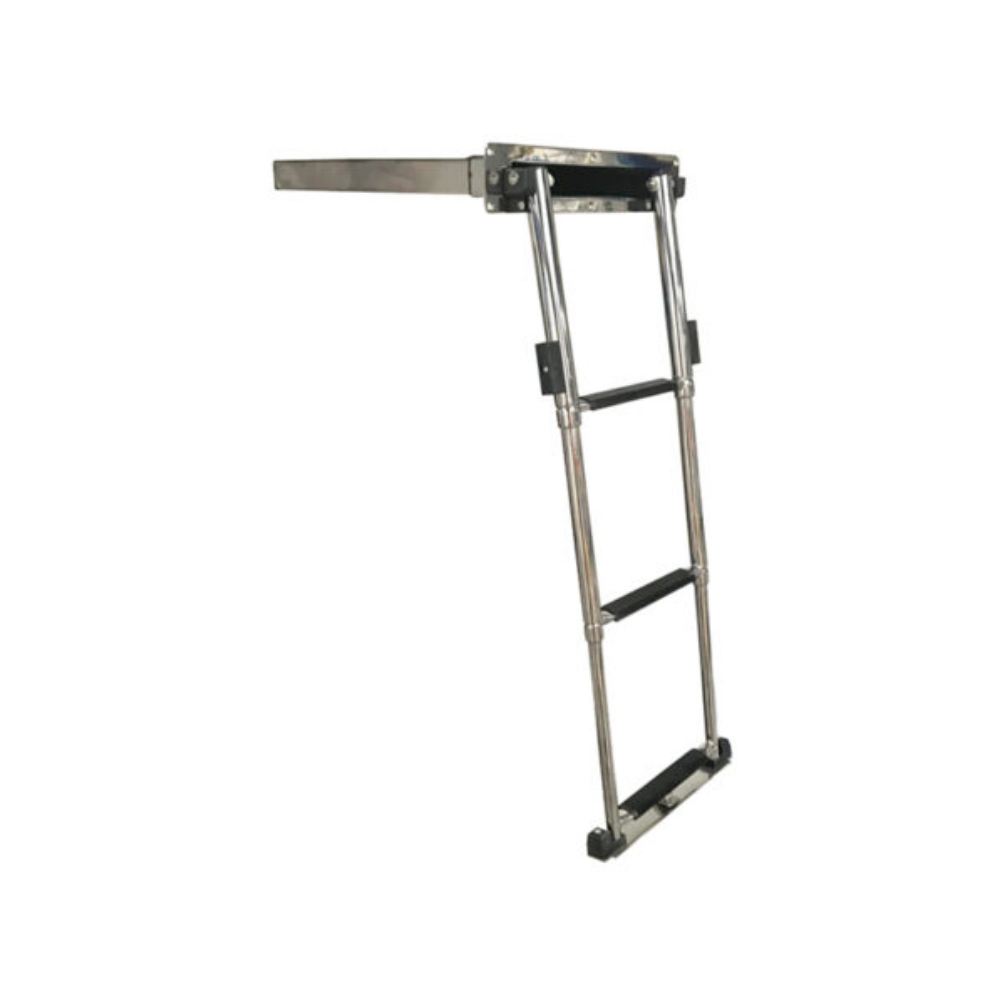 Scaletta telescopica a cassone con tre gradini, progettata per essere montata sullo specchio di poppa. Una scaletta facile da raggiungere e scorrevole che offre una soluzione di sicurezza per la vita in barca. Rende il bagno dalla barca un'azione facile e sicura. La scaletta è facile da estrarre e spingere indietro secondo necessità. È dotata di tre gradini piatti per una presa sicura. La scala è dotata di funzione di blocco dei gradini, di bloccaggio posteriore e di un sistema scorrevole per una regolazione senza attrito. La scala è realizzata in acciaio inox AiSi 316 resistente agli acidi e lucidata a mano per una finitura ottimale.