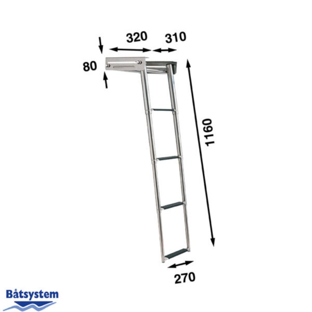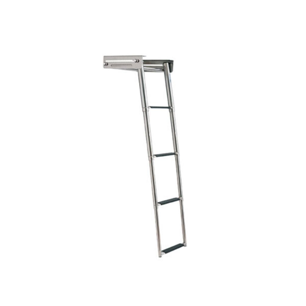 Una scaletta telescopica con rivestimento a quattro gradini, da montare sotto la piattaforma da bagno . Una scelta ovvia per uno sbarco più facile, una soluzione di sicurezza facile da usare e un'esperienza di bagno più piacevole ! Dotato di quattro gradini con appoggio piatto per una salita facile e sicura. La scala è dotata di caratteristiche quali il bloccaggio dei gradini, un pratico bloccaggio posteriore e un sistema scorrevole per una regolazione senza attrito nella struttura . Realizzato in acciaio inossidabile AiSi 316 resistente agli acidi e lucidato a mano per la migliore finitura.